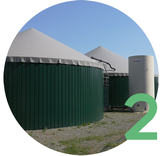 Elles séjournent pendant 70 à 80 jours dans un digesteur et un post-digesteur pour que le phénomène naturel de la méthanisation puisse se faire complètement. Les cuves sont contrôlées en température et en pression. L’absence de contact avec l’air extérieur (oxygène) est également vérifié.